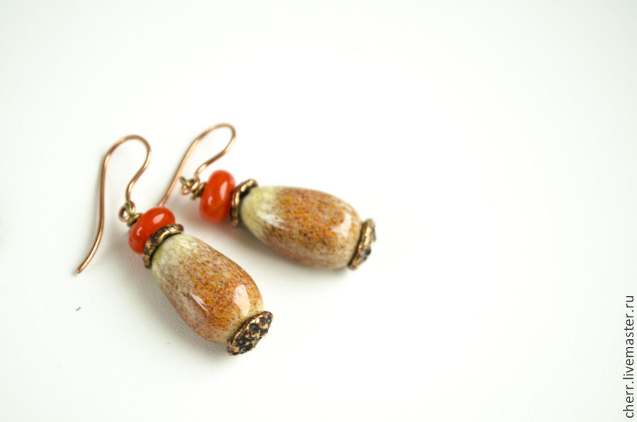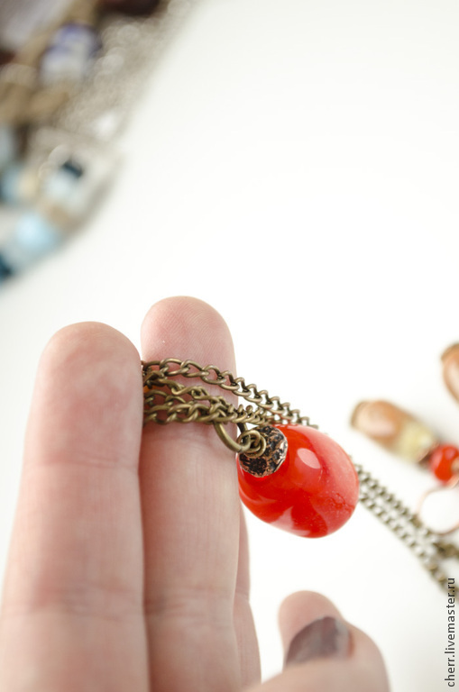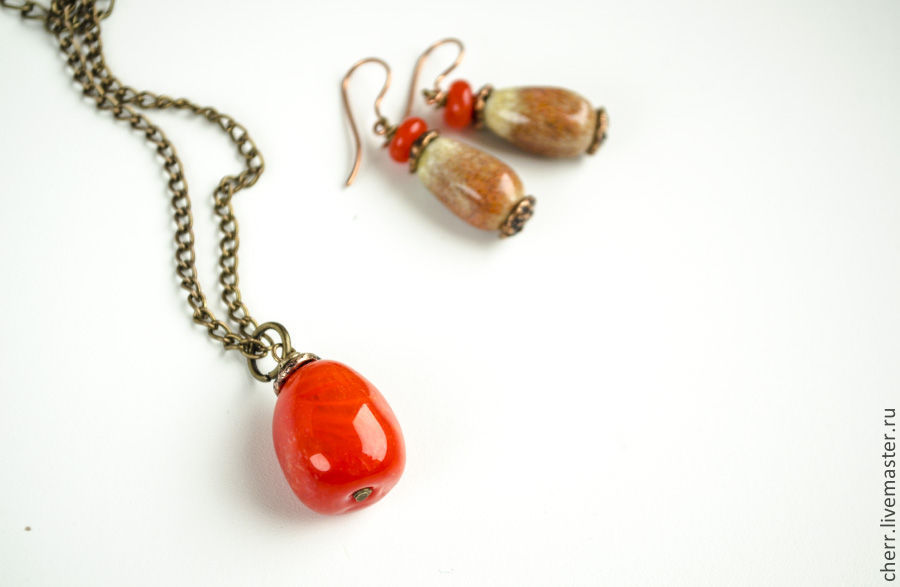 Кулон и серьги из стекла и бронзы.